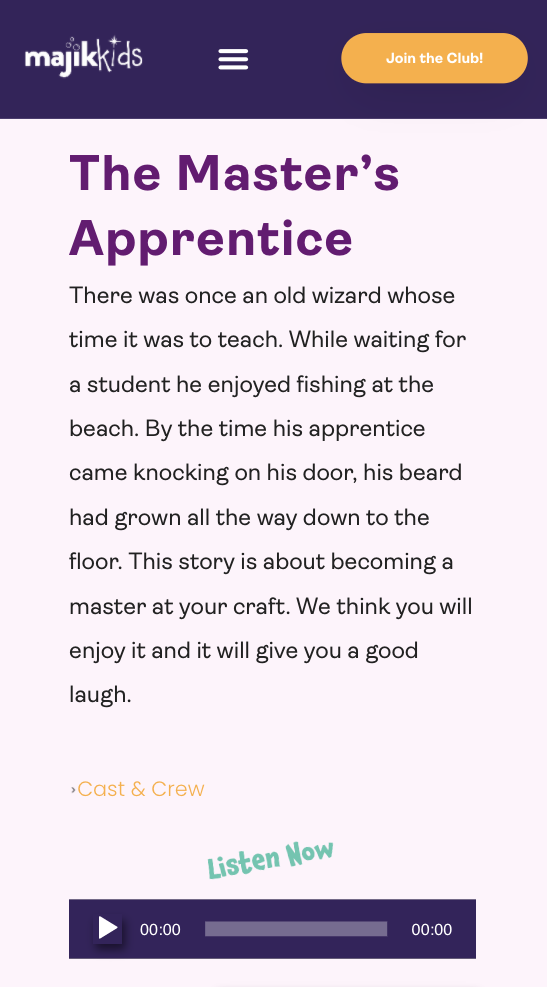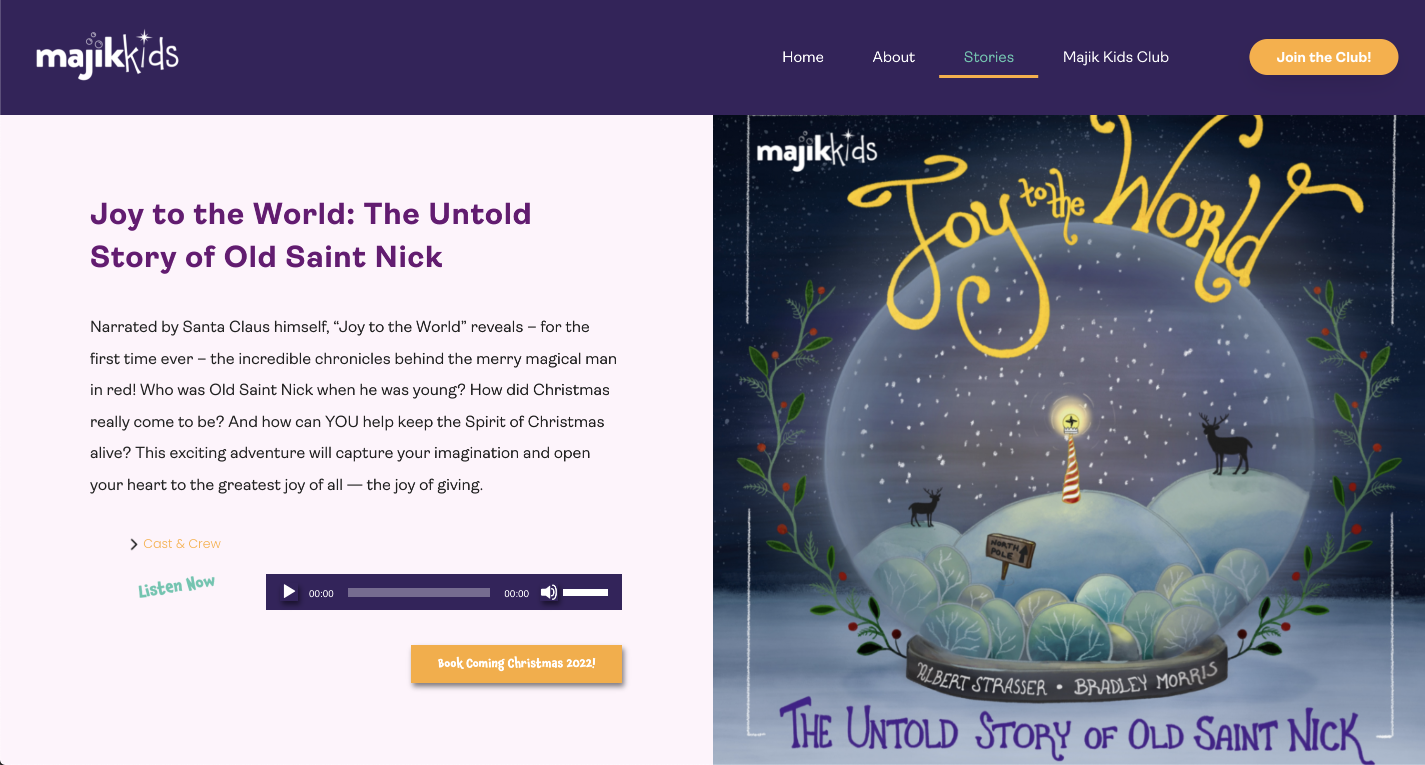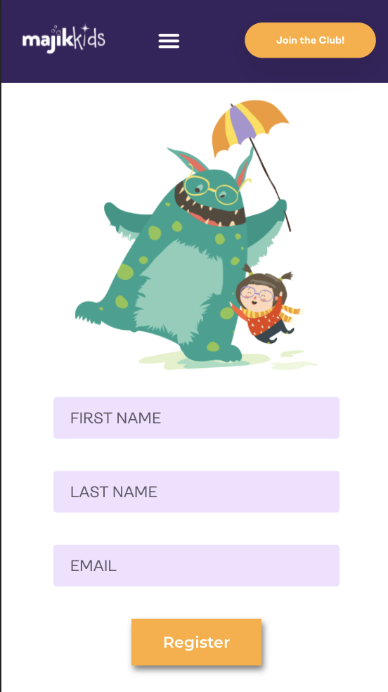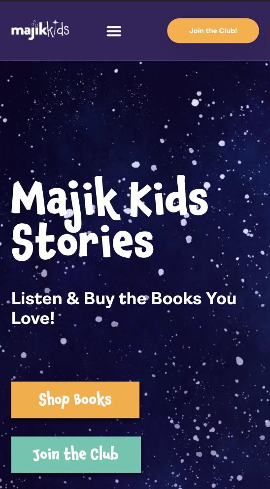 A mock-up was provided to follow in detail to implement and develop each UI component on Word Press. Click the link below to view Majik Kids web application!